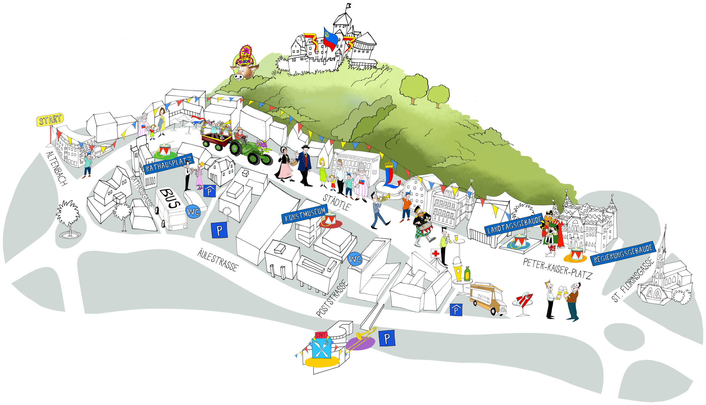Die Parade beginnt am Samstag, 7. September 2024 um 11.00 Uhr beim Rathaus in Vaduz und führt durchs verkehrsfreie Städtle bis zum Peter-Kaiser-Platz.